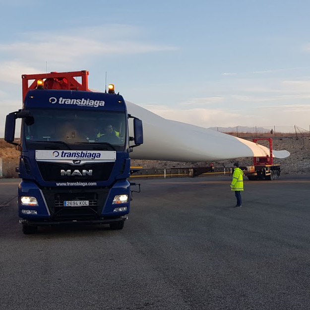 Taking advantage of Transbiaga’s facilities in Salvatierra (Álava), next to the A-1 main road, where there are 5.000 covered and 10.000 uncovered square meters, Nordex-Acciona Windpower manufacturer’s AW64.7 model 36 eolic blades have been transported and stored, throughout January 2019.